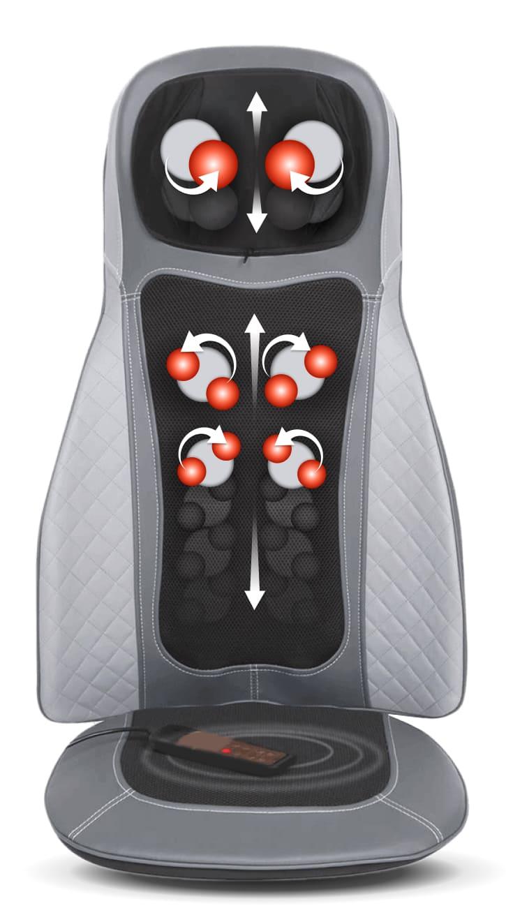 Массажная накидка с увеличенным количеством массажных роликов – это находка для людей, которые проводят много времени в сидячем положении за рулем или компьютером. Есть возможность выбора зоны массажа. Помимо массажа шеи, спины, предусмотрен вибромассаж ягодиц с 3 уровнями интенсивности. Массажные ролики проработают все зажатые мышцы, улучшат кровообращение и снабжение органов кислородом, что качественно повлияет на ваше самочувствие и состояние организма.